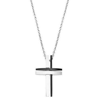 Collar Lotus para hombre con colgante de cruz en acero bicolor en Ip Negro y cadena ajustable a la medida de 45 cm a 49 cm , medida de la cruz 35 mm x 22 mm