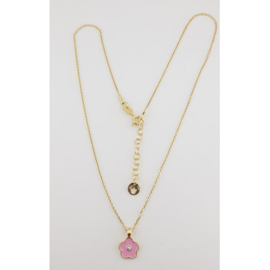 Collar para niñas fabricado en plata de 1ª ley y con baño de oro amarillo, collar con detalle de flor de color y con una circonita blanca, medida ajustable desde 38 a 41 cm de largo .