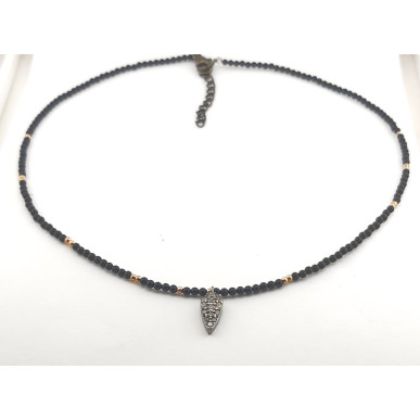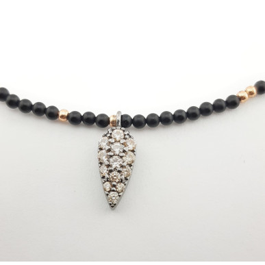 Collar para mujer en plata de primera ley (925mls) con baño de rutenio, circonita coñac y onix negro medida ajustable desde 40 a 43cm, cierre de mosquetón