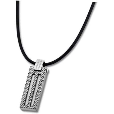 Collar Lotus para Hombre de acero tipo placa con cordón de piel negra. Largo ajustable de 50 cm a 53 cm