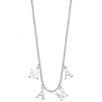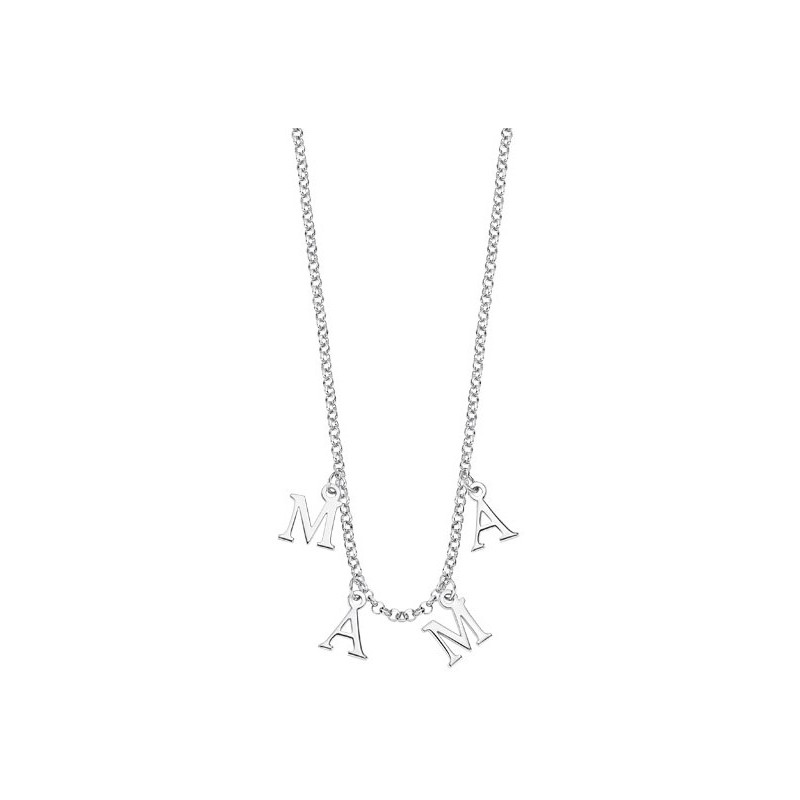 Collar Lotus Silver LP13401-1/1 con cuatro letras con la frase MAMA fabricado en Plata de Ley 925 mls , cadena modelo rolo de largo ajustable desde 42,50 a 45 cm.