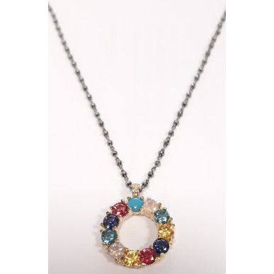 Collar para mujer en plata de 1ª ley 925 mls con baño de oro amarillo de la marca Top Silver, circulo con circonitas de colores talla redonda .