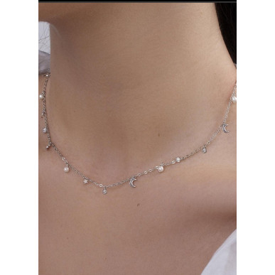 Collar con colgantes en plata para. Perfecto para dar el toque final a todos tus estilismos esta temporada. Collar estilo gargantilla de plata con mini motivos alrededor. Perfectos para un look veraniego!