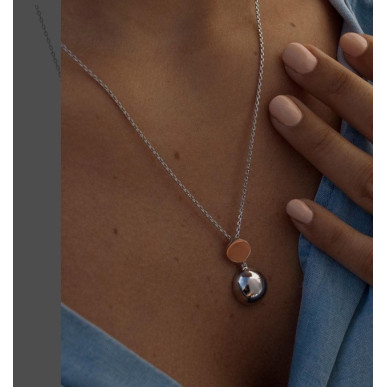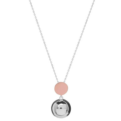 Colgantes bicolor de plata para mujer. El diseño perfecto para lucir esta temporada. Colgantes de plata lisa diseño doble pieza circular con detalle de baño en rosa en la pieza superior. No te quedes sin el tuyo. Largo total de la cadena 45 cm Medida del colgante 13mm de largo y 12mm de diámetro la bola lisa de plata