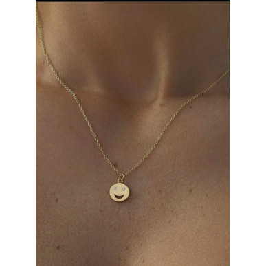 Collar plata originales para mujer. Un diseño minimalista perfecto para lucir este verano. Colgante carita alegre de plata bañado en oro y detalle de circonitas. Combínalo con el resto de piezas de su conjunto para completar todos tus looks con un toque veraniego.