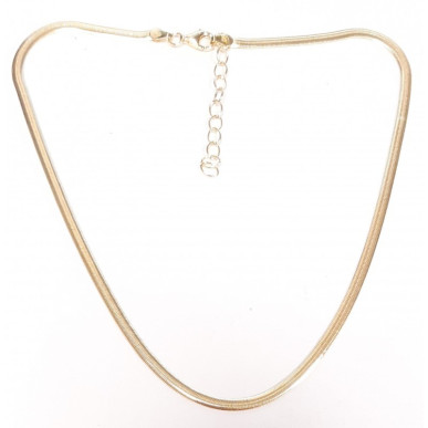 El collar es un choker sencillo y elemental, pero a la vez muy llamativo. Queda ajustadito al cuello y se adapta superbién. El diseño CHAPADO EN ORO está formado por una cadena estrechita de 1,95 mm con efecto “plano o chafado”. Tiene un color dorado superintenso y llamativo, ¡queda precioso! puede llevarse solo o junto a otros collares más larguitos