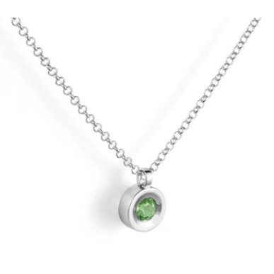 Colgante redondo con peridoto natural encastado en el centro. Una joya simple y básica con la que no necesitarás nada más. Plata, brillo y una piedra natural unidos en un colgante irresistible. Incluye cadena .