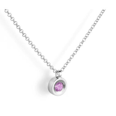Material Plata de Ley 925 Acabado Pulido con baño de Rodio Piedra Amatista natural Ø 5mm. y 0,42 quilates Cierre - de reasa Medidas Ø pieza 10mm. Medida de la cadena 45cm de largo