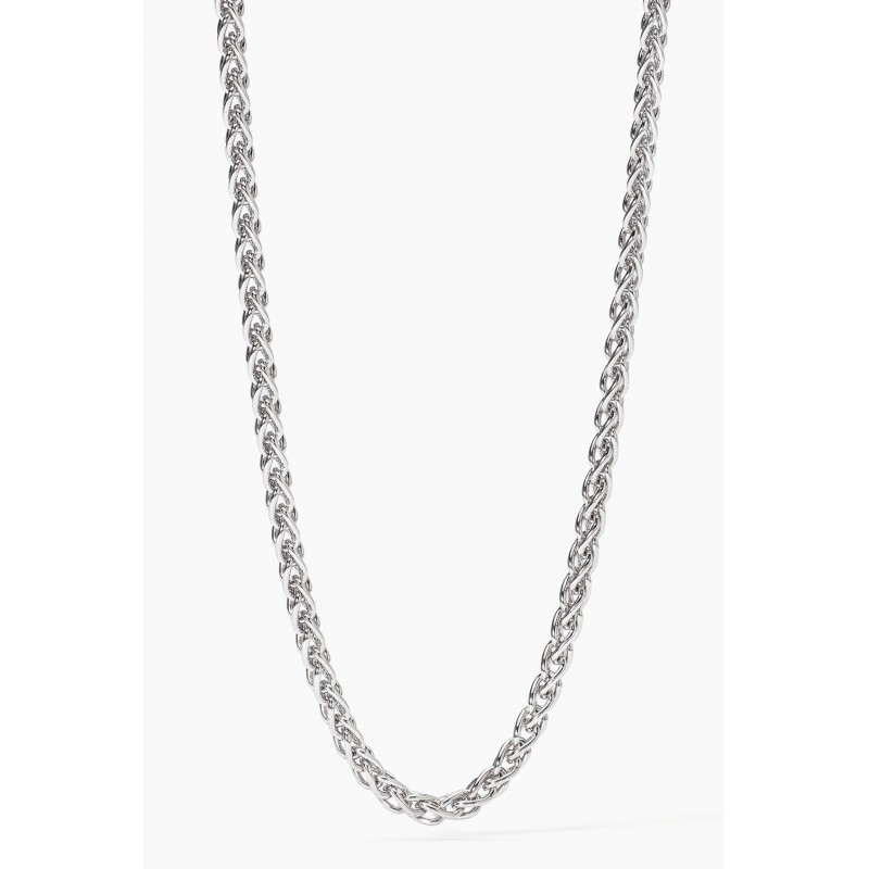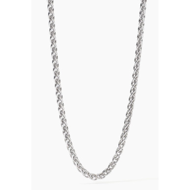 Descripción del Producto Collar para hombre en plata rodiada con cadena de espiga. • Talla única, largo 50 cm • Ancho de cadena: 2,5 mm • Cierre de mosquetón • Material: plata 925