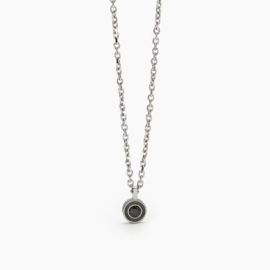 Collar de acero 316L con cadena forzada de 2 mm, colgante de Ø 8 mm con PVD Gunmetal y cristal negro de Ø 4 mm, largo 50 cm