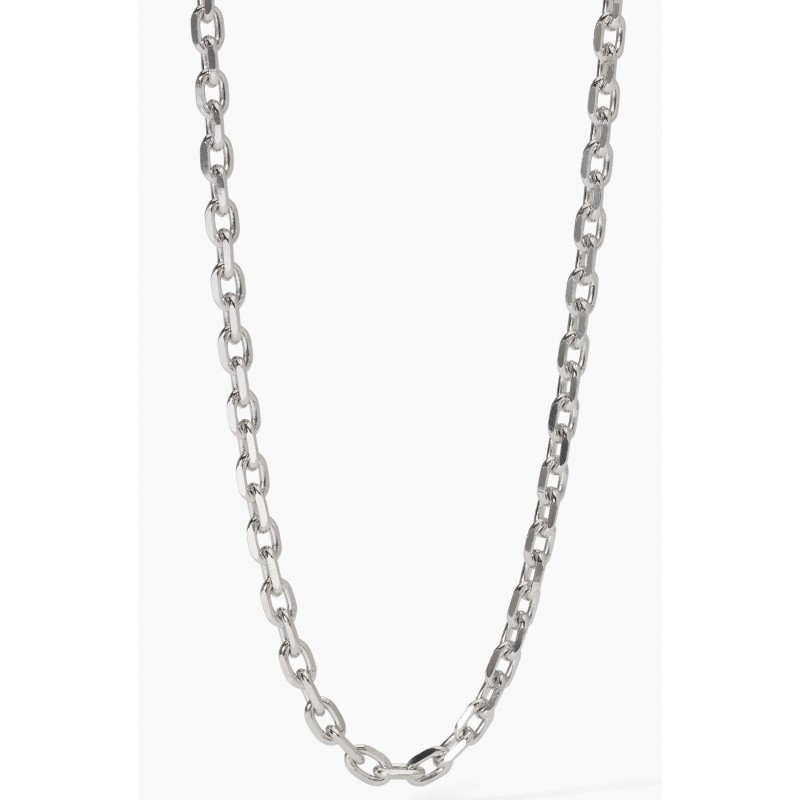 Descripción del Producto Collar para hombre en plata rodiada con cadena de eslabones forzatina. • Talla única, largo 50 cm • Ancho de cadena: 3 mm • Cierre de mosquetón • Material: plata 925