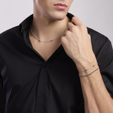 Descripción del Producto Collar ajustable para hombre en plata rodiada con cadena forzatina y circonitas negras. • Diámetro de las circonitas negras: 3 mm • Cierre de mosquetón • Tamaño ajustable, longitud de 45 a 50 cm • Material: Plata 925, Circonitas