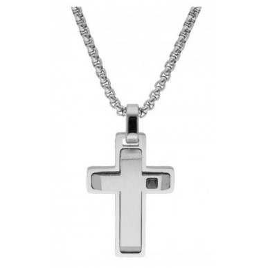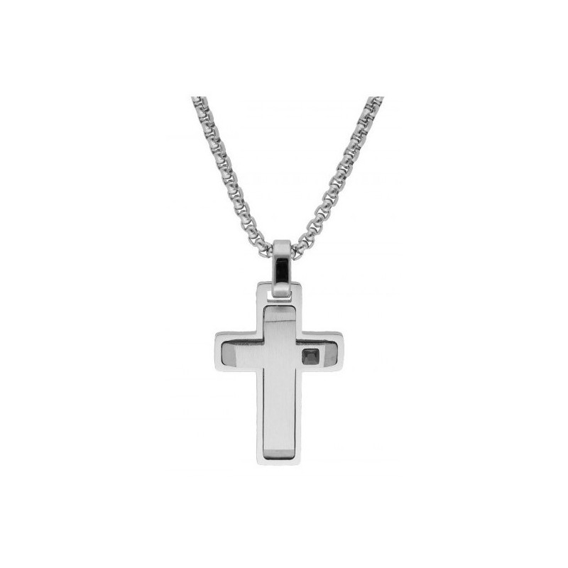 Collar para hombre con colgante de cruz en acero y cadena de 45 + 5 cm. La cadena es tipo redonda con un grosor de 1.80 mm