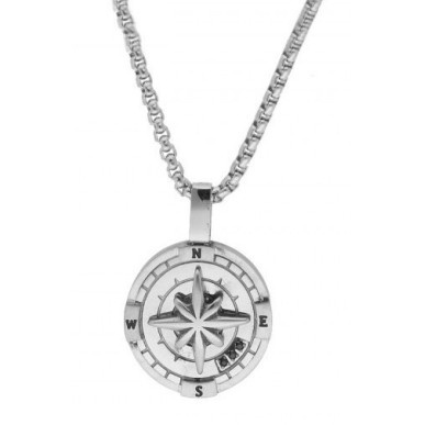 Collar con colgante de la rosa de los vientos en acero largo de la cadena ajustable a las medida de 45 a 50 cm , y de grueso 1.60 mm.Circulo del colgante de 17,50 mm de diámetro