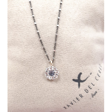Collar para mujer fabricado en plata de 1ª ley 925 mls , orla redonda de 9,60 mm de diámetro con piedra topacio azul y circonita blanca , cadena en plata con baño de rutenio de largo total 40 cm