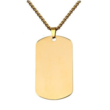 Collar NOWLEY para hombre tipo placa militar en acero y con IP dorado cadena largo de 60cm y la placa medida 28x50mm