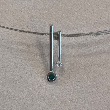 - Colgante de plata 925 - Piedra: Esmeralda y diamante - Cadena de acero con cierre de plata. - Largo cadena 43 cm. - Dimensiones: 23,75 mm de altura, 4,7-6 mm deficinción ancho.