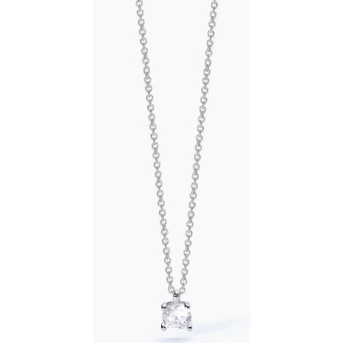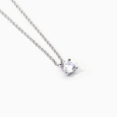 Descripción del Producto Gargantilla para mujer en plata rodiada con cadena forzatina y colgante con circonita blanca. • Diámetro de circonita: 4,5 mm • Dimensiones de cadena: 1,15 mm • Tamaño ajustable, longitud de 39 a 43 cm • Cierre de mosquetón • Material: Plata 925, Circonitas