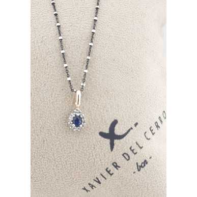 Collar para mujer fabricado en plata de 1ª ley 925 mls y oro de 9 kts , colgante en forma de lagrima de 8,50x6,66 mm de medida conpiedra azul , cadena en plata con baño de rutenio de largo total 40 cm