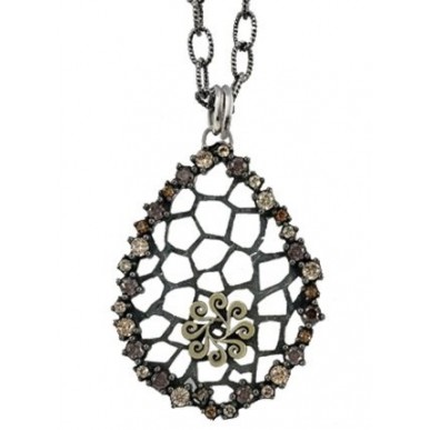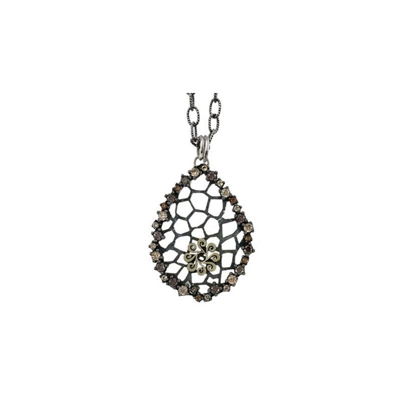 Colgante de alta joyería en plata rodiada y oro de 18K, decorado con circonitas en tonos chocolate y champán. Incluye una cadena de plata de 60 cm y detalles exclusivos con el logotipo de Bohemme.