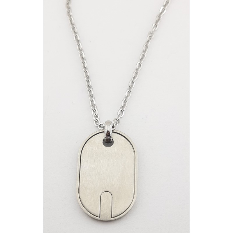 Collar con placa de acero para hombre. El largo de la cadena es ajustable a las medidas de 50 y 55 cms,el grosor es de 2.2 mm