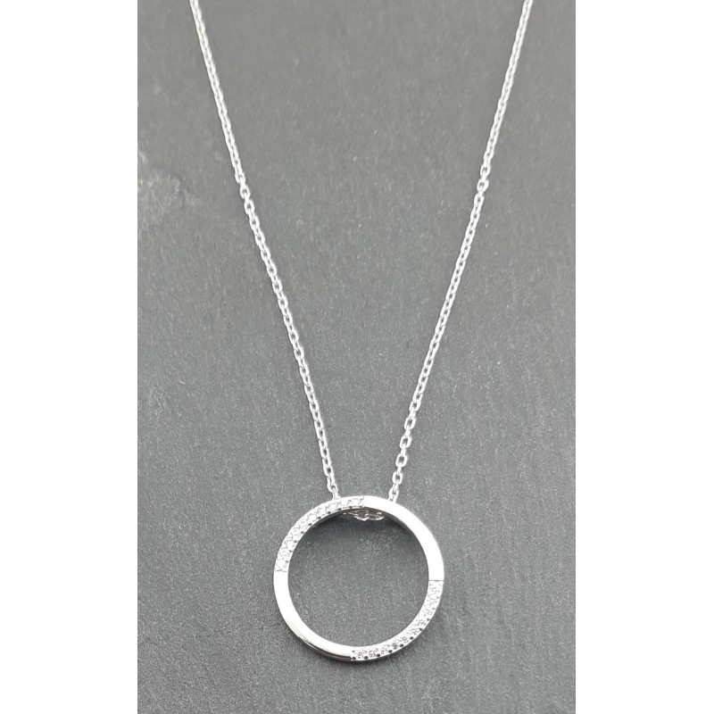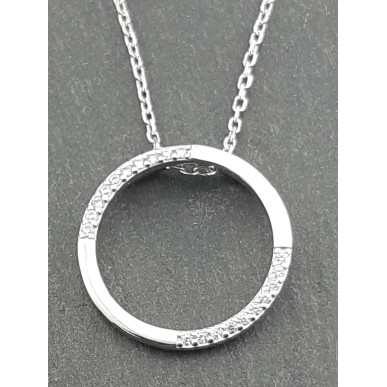 Collar con colgante en plata de 1ª ley 925mls con colgante redondo de 20.50mm de diámetro y circonitas blancas , cadena ajustable de 39 a 44 cms
