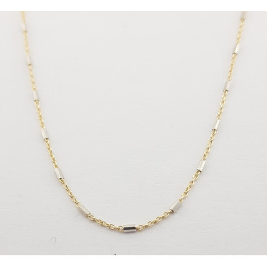 Cadena tipo collar en oro de 1ª ley 18ktes 750mls , cadena con siete mallas forzadas en oro amarillo y barrita en oro blanco , especial para llevar sola como collar o convinada col algun colgante , Largo total de la cadena 42cms.