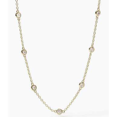 Gargantilla de plata bañada en oro de 18k con puntos de luz de circonitas. • Engaste de piedras de circonita en bisel • Diámetro de las piedras de circonita: 3 mm • Cierre de mosquetón • Tamaño ajustable, largo de 40 a 45 cm • Material: plata 925, piedras de circonita • Acabado: baño de oro de 18k