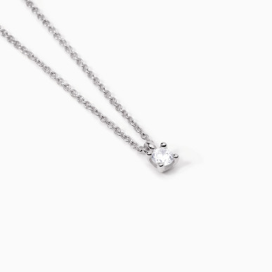 Gargantilla de mujer en plata rodiada con cadena tipo cable y colgante con circonita blanca. • Diámetro de la circonita: 3,5 mm • Tamaño de la cadena: 1,15 mm • Tamaño ajustable, largo de 39 a 43 cm • Cierre de mosquetón • Material: Plata 925, circonitas