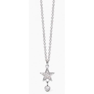 Gargantilla de acero 316L con cadena de rodillos de 1,5 mm y colgante de 9,5x16 mm con estrella de 9,5x9,2 mm y cristales de Ø 3 y 1,25 mm, largo ajustable de 40 a 45 cm