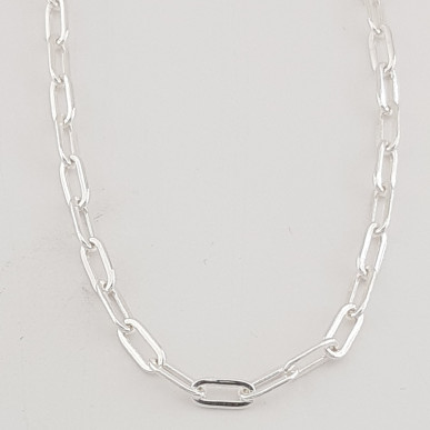 Esta original cadena de plata lleva los eslabones ovalados- alargados de medida 6,60x2,90 mm, y mide 80 cm de larga