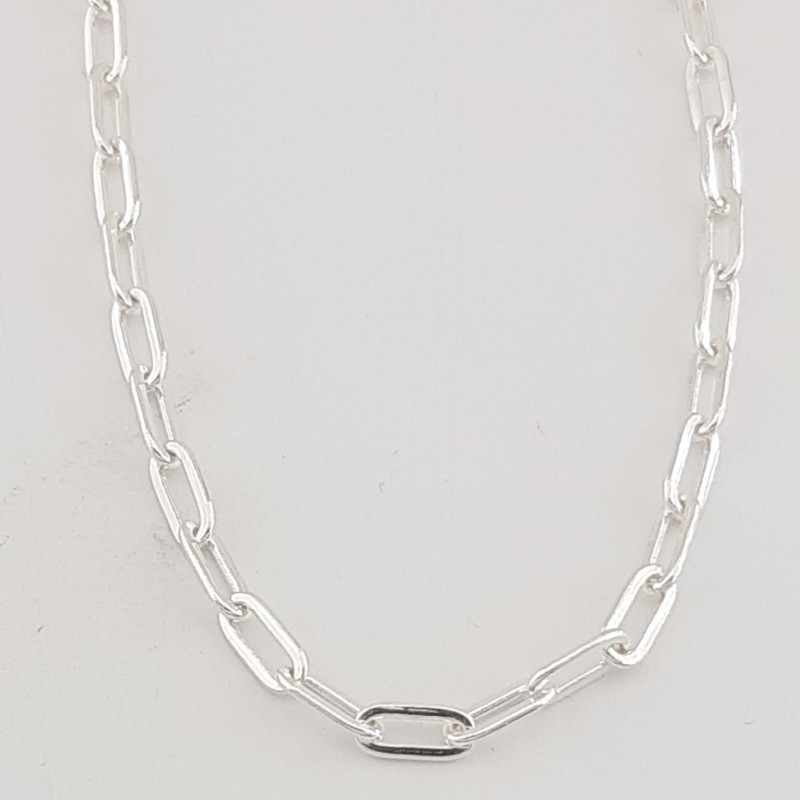 Esta original cadena de plata lleva los eslabones ovalados- alargados de medida 6,60x2,90 mm, y mide 45 cm de larga