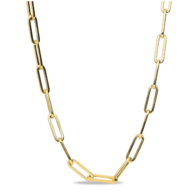 La cadena forzada alargada está fabricada en plata de 1ª ley 925 milésimas y con baño de oro amarillo , mide 60cm de larga