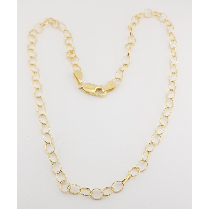 collar de anillas está fabricada en plata de 1ª ley 925 milésimas y con baño de oro amarillo i de 40cm de largo , las anillas son ovaladas de medida 6,10x4,70mm