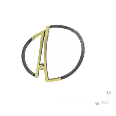 Colgante fabricado en plata, oro de 18k y brillante Colgante de 34mm de alto por 35mm de ancho fabricado en plata de 1ª ley 925mls oxidada, oro de 18k 750mls pulido y brillante de 0.04ct. Una pieza contemporánea y elegante. Se incluye al colgante cable de acero de tres tiras 0.5mm en color plata y dorado con el largo total de 44cm.
