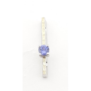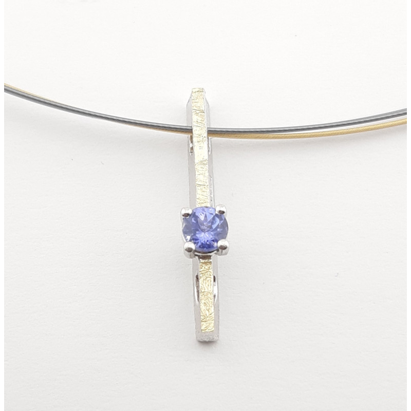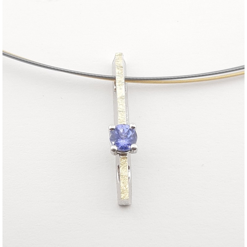 Colgante de 25mm de alto por 5mm de ancho fabricado en plata de 1ª ley 925mls rodiada, oro de 18k 750mls rallado y tanzanita azul. Una pieza básica pero a la vez especial.