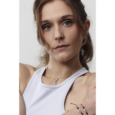Se incluye al colgante cable de acero de tres tiras 0.5mm en color plata y dorado con el largo total de 44cm.