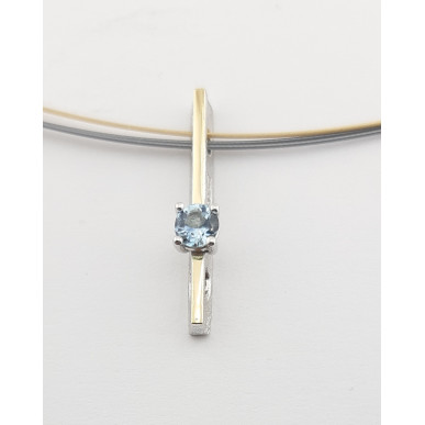Colgante de 25mm de alto por 5mm de ancho fabricado en plata de 1ª ley 925mls rodiada, oro de 18k 750mls pulido y aguamarina. Luce como nadie los diseños de Miquel Sardá