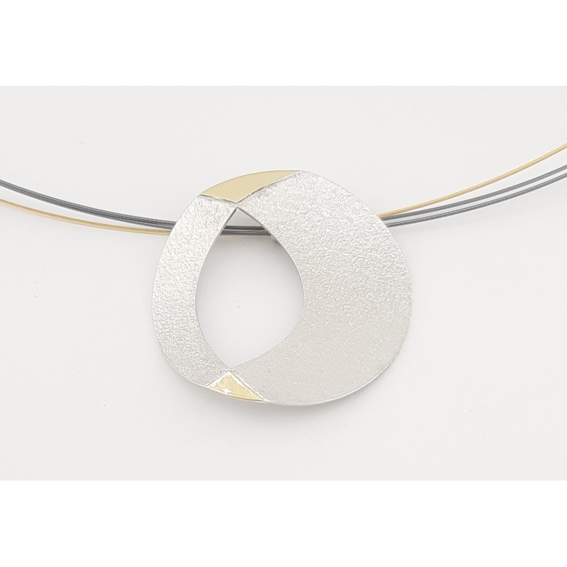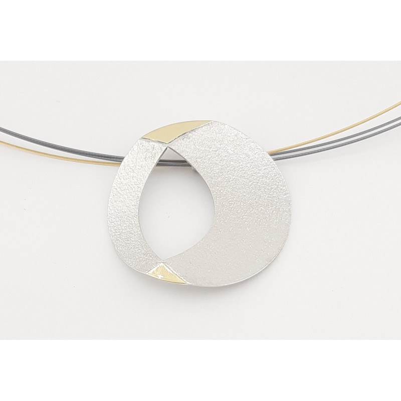 Colgante de 30mm de largo por 30mm de ancho fabricado en plata de 1ª ley 925mls rodiada y oro de 18k 750mls pulido. Una pieza contemporánea y elegante.