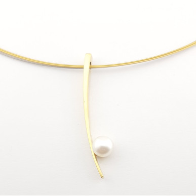 Collar con colgante en plata de 1ª ley 925 mls y con baño de oro amarillo , colgante con una perla cultivada de agua dulce de diámetro 6,00mm colgante medida 40,00mm en matizado , incluido un collar con tres hilos de acero IP dorado y IP acero con cierre de mosquetón medida de largo 42 cm