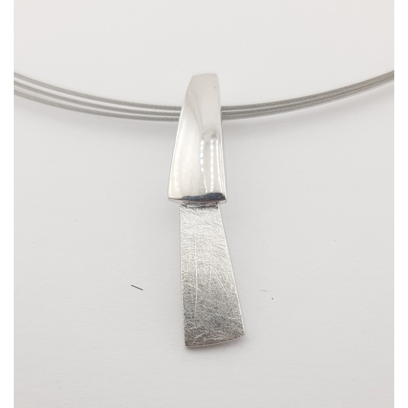 Collar para mujer en plata de 1ª ley 925 mls, collar con dos barritas uno terminado en plata brillo y mate hielo , medida largo 28,00 x 6,00mm ancho, incluido un collar con tres hilos de acero con cierre de mosquetón medida de largo 42 cm.