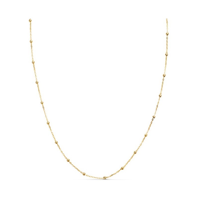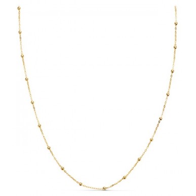Cadena modelo forzada con bola de 2mm de diámetro de plata de 1ª ley 925mls , con baño de oro amarillo y el largo de la cadena es 45cms , cierre de reasa , .
