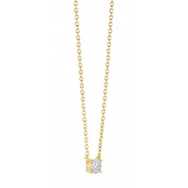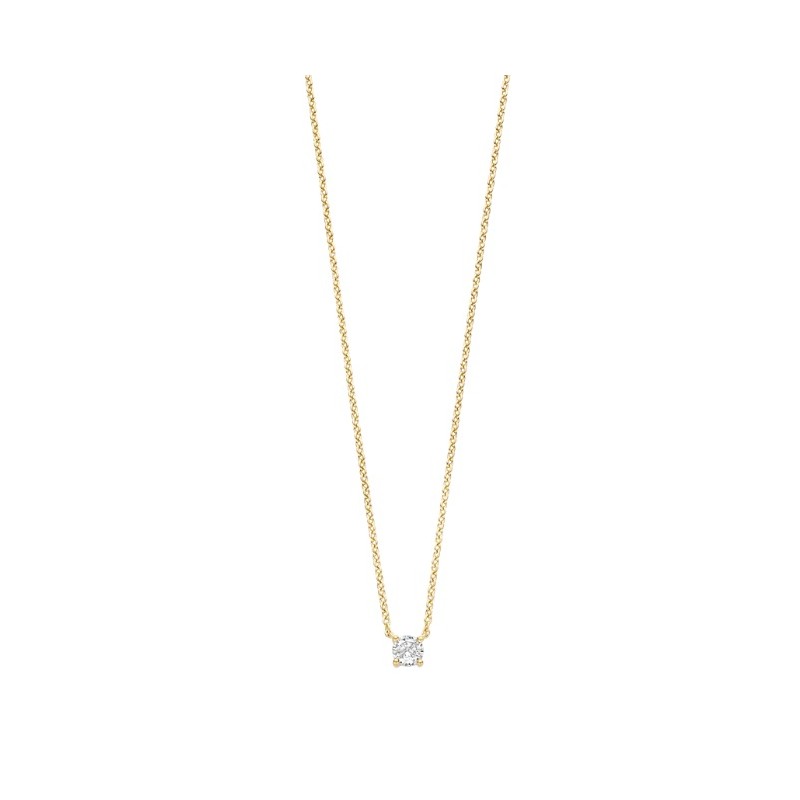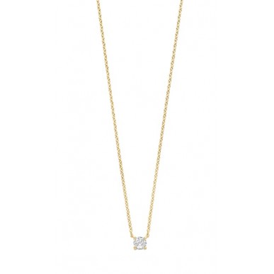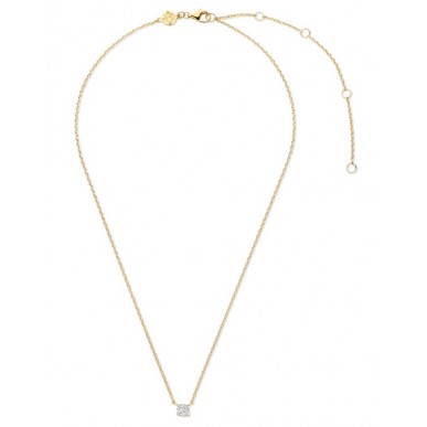 Elegante collar de diseño minimalista fabricado en plata de ley 925 con baño de oro. Presenta una brillante circonita cúbica blanca engastada en garras, ideal para el uso diario o para crear composiciones de cadenas superpuestas.