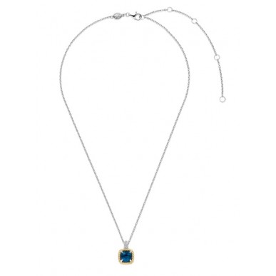 Acerca de esta joya Realza tu estilo con este collar TI SENTO 34111DB de plata chapada en oro. Una piedra azul profundo de talla cojín es la protagonista, engastada en un bisel chapado en oro con diseño trenzado que evoca la elegancia vintage. El colgante cuelga de una argolla chapada en platino con circonitas cúbicas blancas engastadas a mano, añadiendo un delicado brillo a esta pieza central tan llamativa. Elaborado en plata de ley 925 de primera calidad, este diseño juega con el color, la textura y la forma, equilibrando la riqueza del oro con la nitidez del pavé. Su silueta de talla cojín ofrece un atractivo atemporal con un toque moderno y escultural. Combínalo con una blusa clásica, un vestido de noche o un traje impecable; esta pieza se adapta a la perfección del día a la noche. Lúcelo solo para un look impactante o combínalo con cadenas delicadas para personalizar tu estilo. Sin níquel e hipoalergénico, te garantiza comodidad y una elegancia duradera.
