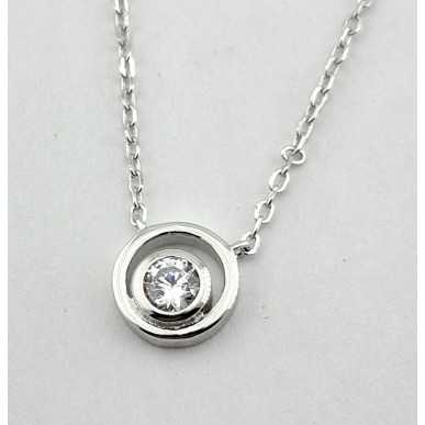 Collar mujer en plata de 1ª ley 925mls ,collar con doble circulo de diámetro 9mm y una circonita blanca, cadena modelo farzada de largo ajustable 39 -42- 44 cm.Cierre de mosquetón.