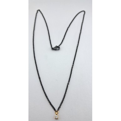 Colgante de oro rosa de 1ª ley 18kilates 750mls engastado en cuatro garras un diamante de 0,07quilates cadena de acero quirurgico con rutenio cierre de mosquetón largo total 42cm.