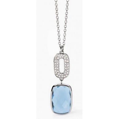 Collar de acero 316L con cadena de rodillos de 2 mm, elemento de 11,5x18 mm con cristales de Ø 1,5 mm y colgante de 16x24 mm con cristal azul facetado, largo ajustable de 40 a 45 cm