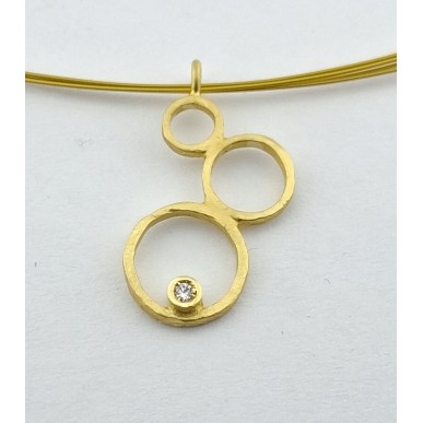 Collar para mujer de la colección MONTSANT fabricado artesanalmente en plata de 1ª ley 925 mls con baño de oro amarillo con triple circulo y con un diamante de LABORATORIO , terminado en mate satinado, de medida largo x ancho25,00 x 13,00mm