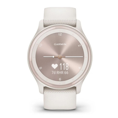 Reloj Garmin Vivomove Sport Caja y correa de silicona de color blanco con detalles light gold