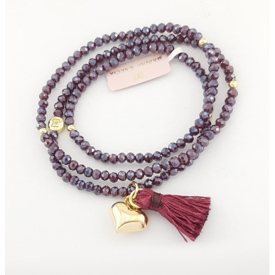 Pulsera Marina García para mujer de la colección Zen Burgundy fabricada en plata bañada en oro amarillo compuesta por cristales Strass facetados en varias tonalidades . Cuenta con un abalorio colgante en forma de corazón en plata bañada en oro. Esta pulsera de diseño elástico puede ser utilizada como tobillera y gargantilla.